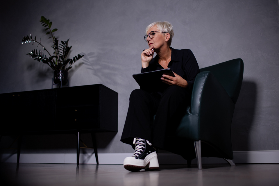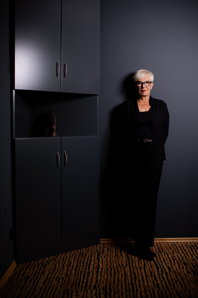 Als Location entschieden wir uns für ihr Büro, da dies mit den dunklen Wänden die gewünschte Atmosphäre großartig betonte. Darüber hinaus haben die eigenen vier Wände oft den Vorteil, dass wir alle gewünschten Outfits und Accessoires griffbereit haben, meine Kunden sich oft wohler fühlen und dadurch lockerer sind.